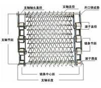 網(wǎng)帶規(guī)格: 鏈條標(biāo)號(hào) 節(jié)距P 鏈桿節(jié)距P1 鏈桿直徑D 網(wǎng)絲直徑D1